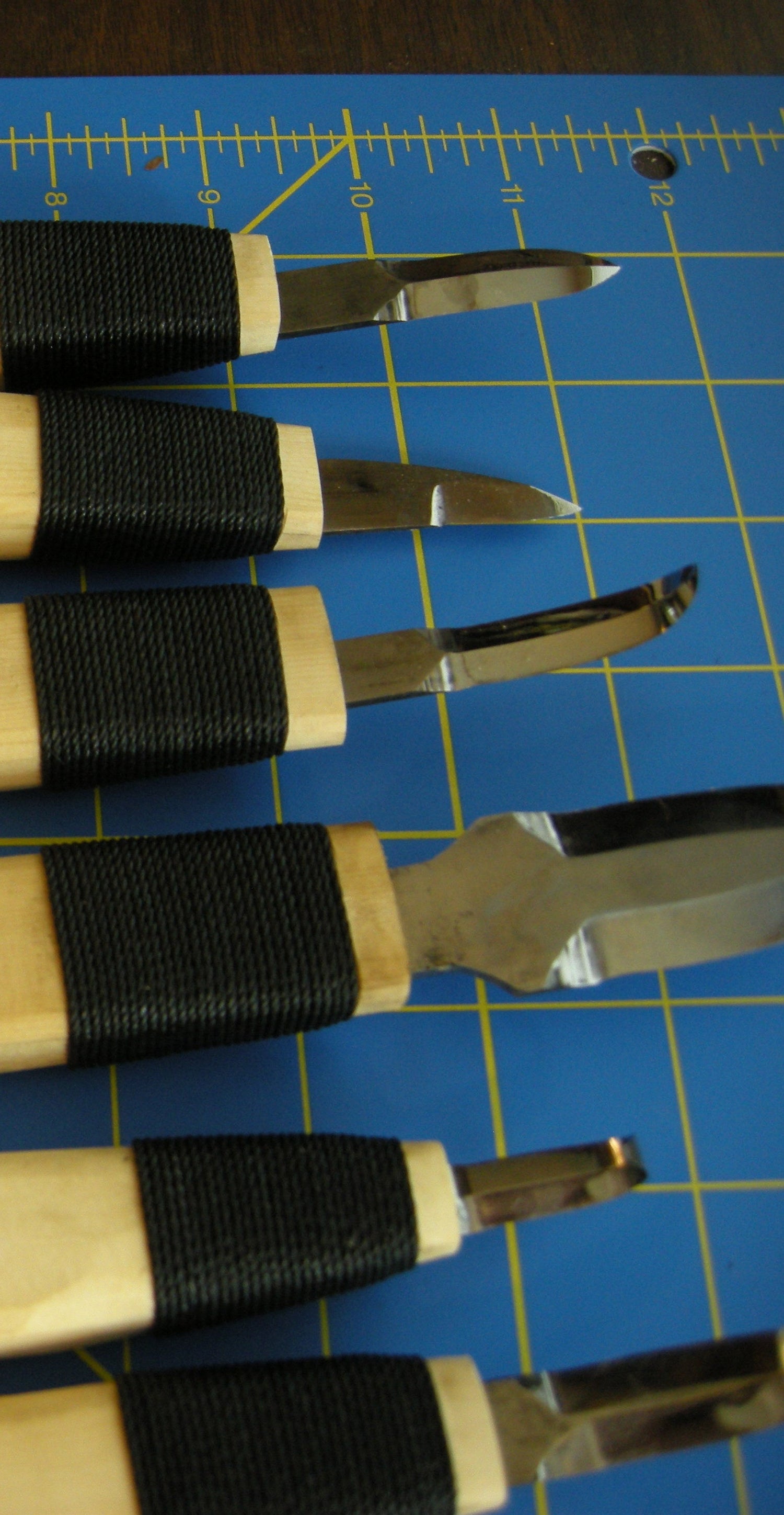 Beveled on both sides, they efficiently carve in both directions allowing you to cut with the grain without rotating the work. The offset of the blade allows them to get closer to the work without the handle getting in the way.